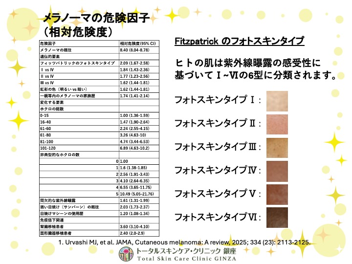 Fitzpatrick (フィッツパトリック)のフォトスキンタイプという日光過敏性に基づく肌分類も覚えましょう(※※)。